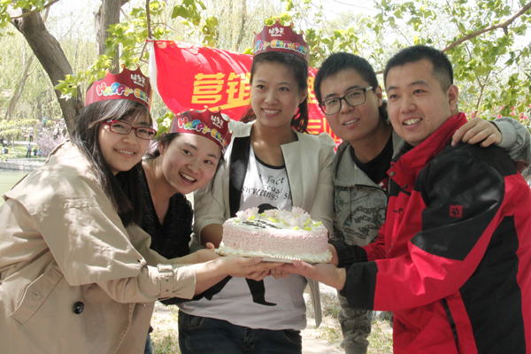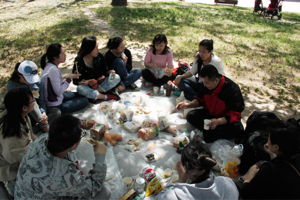 上午10點(diǎn),中心12位伙伴集合完畢后,展開(kāi)游園活動(dòng)。在風(fēng)景秀麗的龍?zhí)逗吜粝铝私k麗的倩影和美好的回憶。游園過(guò)后的戶外野餐環(huán)節(jié)是本次活動(dòng)的亮點(diǎn)。按照之前派發(fā)的“任務(wù)”,大家都拿出了自己的“招牌美食”—驢肉火燒、水果沙拉、紫菜包飯、炸里脊、久久鴨,大家席地而坐,享受美食、暢談天地。營(yíng)銷(xiāo)管理中心總監(jiān)宋晶還為一至四月的“壽星”準(zhǔn)備了特別驚喜。溫馨的蛋糕、精美的禮物、歡快的游戲,深厚的情誼定格在那一瞬間……飽餐過(guò)后的游戲環(huán)節(jié),將當(dāng)天的活動(dòng)推向高潮。其中“疊報(bào)紙”的游戲更是采用分組PK的形式,每個(gè)團(tuán)隊(duì)為了勝利和榮譽(yù),全力以赴的狀態(tài)至今讓人歷歷在目……