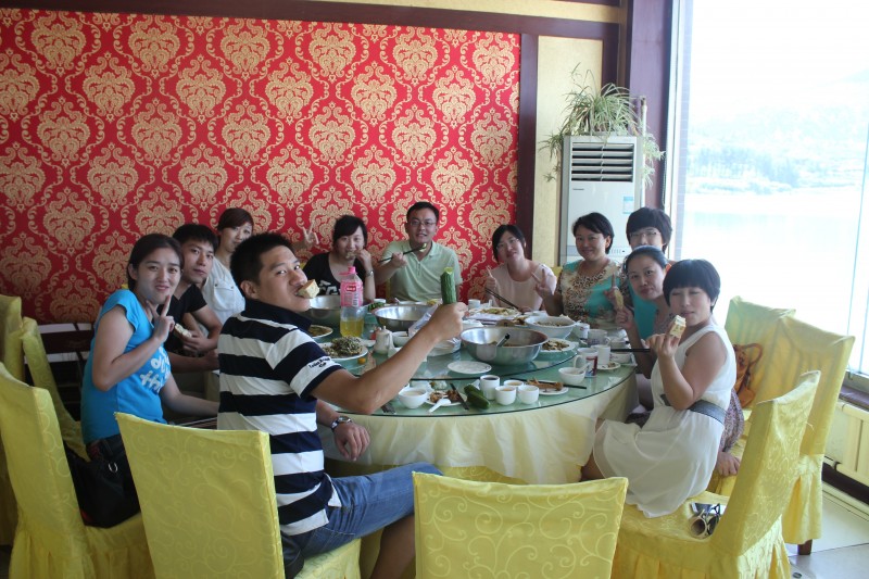 中午時分,大家乘坐大巴車到了雪野湖畔最具當?shù)靥厣?ldquo;魚頭老店”,熱心的酒店老板微笑著招呼每一個伙伴入座,待大家都入座后,主持人揭曉了一個神秘環(huán)節(jié),給8月份過生日的伙伴們辦了一個隆重的慶生會,在伙伴們的祝福聲中,房總給大家頒發(fā)了公司精心準備的創(chuàng)意禮物,一番合影留念之后,歡樂盛大的午宴開始了,野菜、魚頭。。。美味豐盛的菜肴伴隨著酒杯的碰撞聲和彼此的祝福聲,交織成一首歡快的交響樂,其樂融融的畫面留在了大家的記憶深處。。。。。。