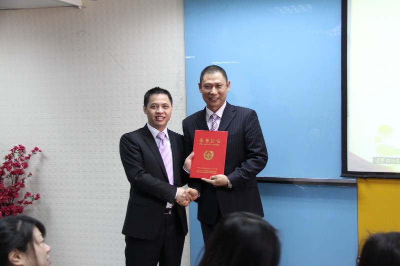 11月30日早會(huì),北京影響力企業(yè)管理有限公司董事總經(jīng)理劉永忠代表北京市朝陽區(qū)紅十字會(huì)為教學(xué)中心張利輝老師頒發(fā)榮譽(yù)證書,表彰張老師為慈善事業(yè)做出的貢獻(xiàn)。