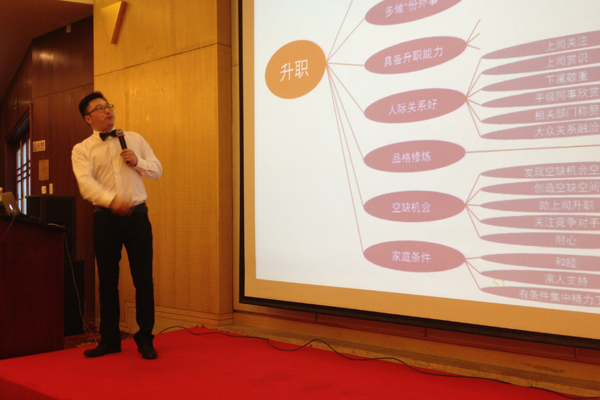 課程特點(diǎn):本次內(nèi)訓(xùn)從訓(xùn)前調(diào)研問卷上可以看出,參訓(xùn)者對(duì)目標(biāo)管理的意義非常不明確,并且對(duì)目標(biāo)管理的方法不了解。勞老師從三大方面和同學(xué)們分享1.為什么要制定目標(biāo)?制定目標(biāo)的意義和作用是什么,勞老師通過九大理念中的幾個(gè)觀念和大家分享制定目標(biāo)的作用。2.制定目標(biāo)的方法:思維導(dǎo)圖,以小組討論的形式讓大家去練習(xí)如何利用思維導(dǎo)圖的方式制定目標(biāo),并且使目標(biāo)變得更加量化和可實(shí)現(xiàn)性更高,不斷提醒大家要講:達(dá)不成怎么辦?3.主要分享了如何實(shí)施目標(biāo)管理,目標(biāo)管理就是自我管理,要做好目標(biāo)的監(jiān)督和檢查。