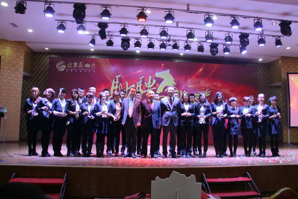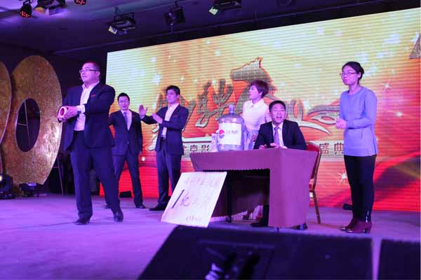 下午3點(diǎn),營(yíng)銷啟動(dòng)大會(huì)隆重召開(kāi),揭開(kāi)了馳騁2014年沖刺1.28億目標(biāo)的序幕。會(huì)上對(duì)在2013年破億之路上做出重大貢獻(xiàn)以及突出表現(xiàn)的老師、公司領(lǐng)導(dǎo)、精英伙伴、精英家屬、團(tuán)隊(duì)頒發(fā)了獎(jiǎng)杯、證書(shū)以及現(xiàn)金獎(jiǎng)勵(lì),極大的鼓舞了現(xiàn)場(chǎng)的每一位伙伴。“濃情孝意獎(jiǎng)”成為本次大會(huì)的一大亮點(diǎn)。精英和家屬共同登上領(lǐng)獎(jiǎng)臺(tái),董事長(zhǎng)孟昭春、總裁劉永忠為其一一頒發(fā)獎(jiǎng)品與證書(shū),感謝家屬對(duì)孩子工作的支持與幫助;“銷冠時(shí)刻”將本次盛會(huì)推向了高潮。總裁劉永忠為公司2013年度銷冠岳曉艷頒發(fā)了象征銷冠精神的竹簡(jiǎn),并與其共同按下金手印,留下這彌足珍貴的瞬間;接下來(lái),劉總公布了2014年的營(yíng)銷激勵(lì)方案,并揭示了2014年的精英之旅目的地——新加坡、馬來(lái)西亞;“目標(biāo)誓師”環(huán)節(jié)讓本次大會(huì)達(dá)到頂峰。象征分公司目標(biāo)的九匹戰(zhàn)馬從場(chǎng)下經(jīng)過(guò)每位現(xiàn)場(chǎng)伙伴的傳遞來(lái)到臺(tái)上,揭示了九家分公司的新年目標(biāo);最后參會(huì)全體伙伴合影,留下了這一見(jiàn)證歷史的瞬間。